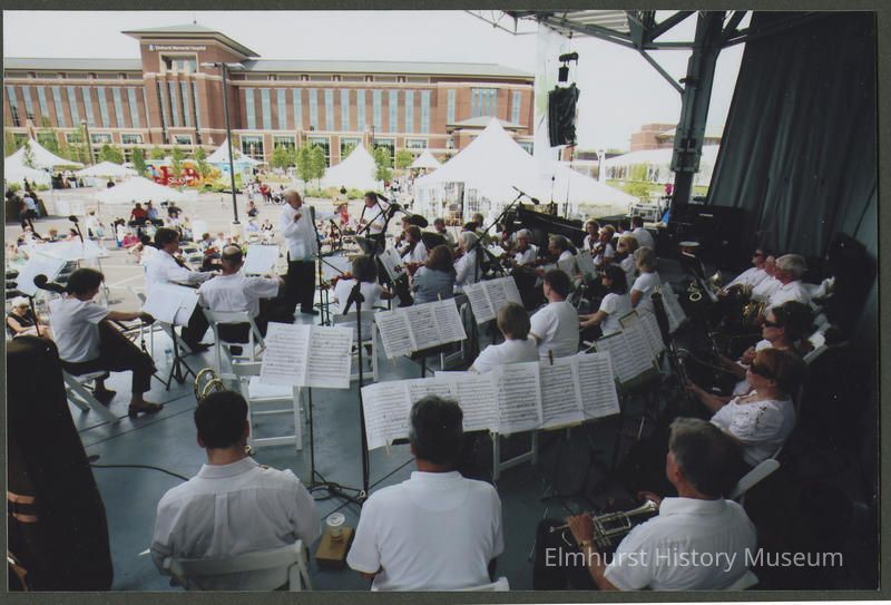 Band playing outside the newly-opened at Elmhurst Memorial Hospital's Community Festival at 155 E. Brush Hill Road with new building in the background.Photograph Details