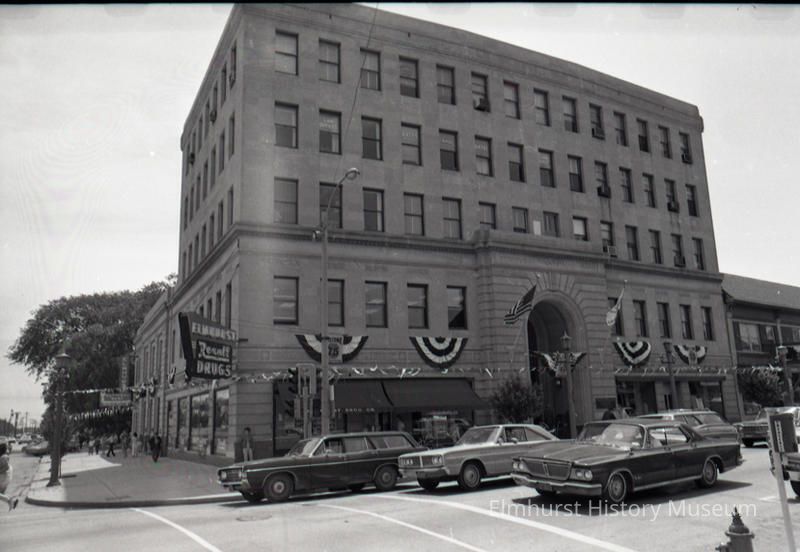 Elmhurst National Bank, 105 S. York Street, decorated for its 75th anniversary.Photograph Details