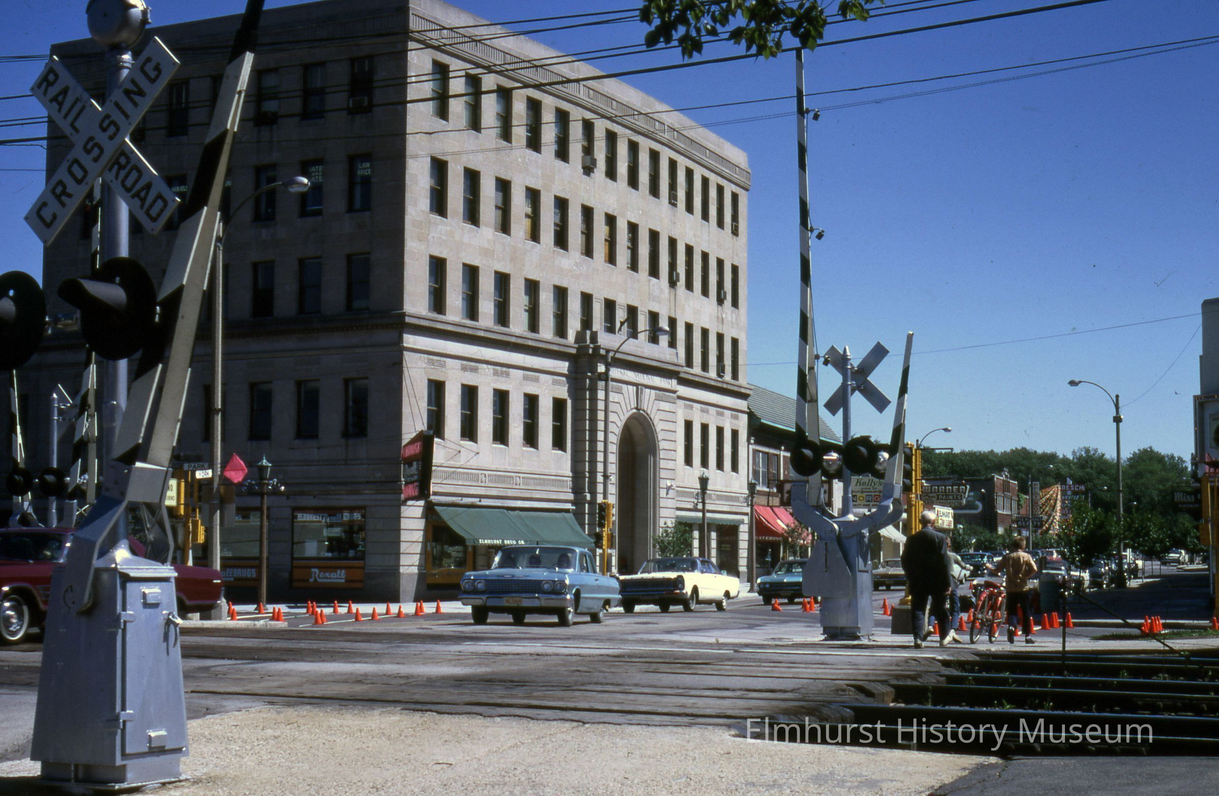 Elmhurst National Bank at the southeast corner of S. York Street and Park Avenue, looking south from the north side of the railroad tracks.Photograph Details
