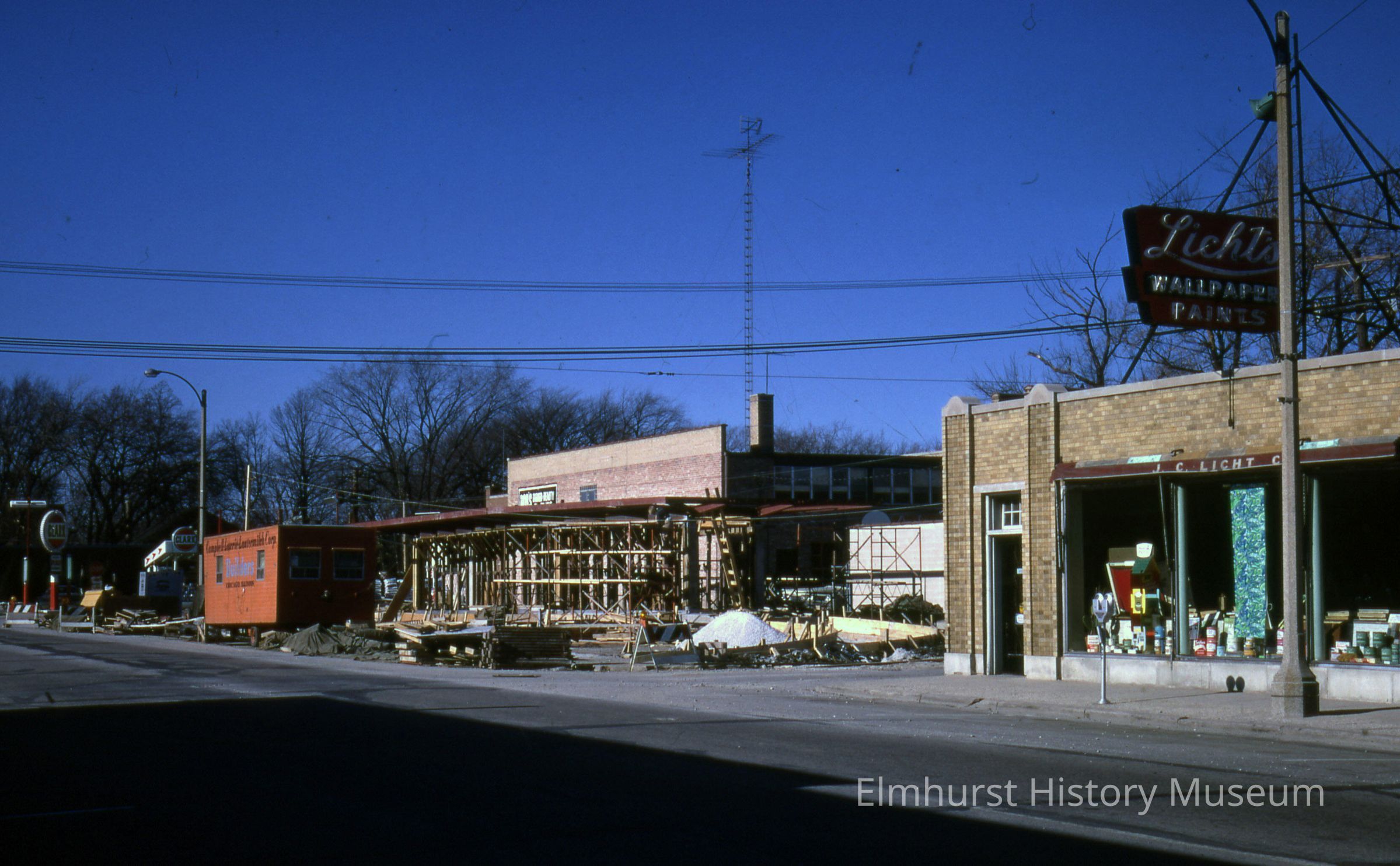 iew of Elmhurst National Bank Drive-in under construction at the northeast corner of Addison Avenue and Second Street, looking west. J.C. Licht paints is in the foreground.Photograph Details