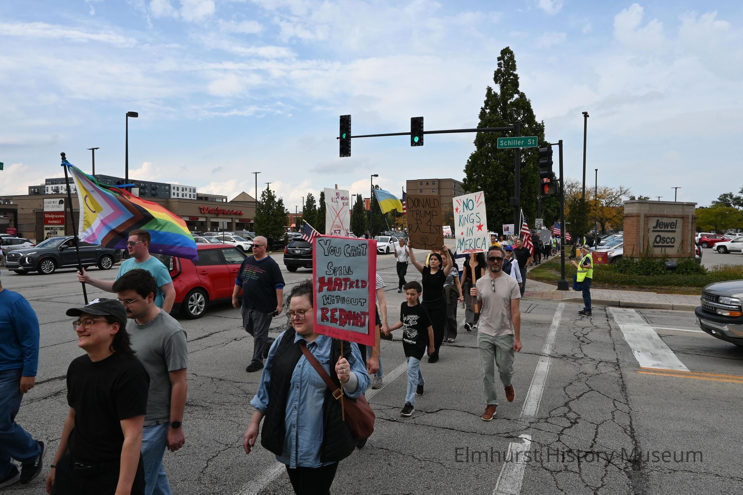 No Kings march protesting against the Trump administration marching towards Glos Memorial Park from Elmhurst City Hall.Photograph Details