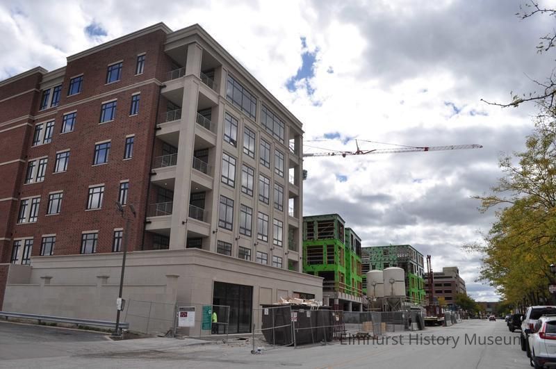Looking south, newly-constructed Elmhurst one95 Condo Building at 195 N. Addison Avenue. Construction of The Fynn apartment complex at 183 N. Addison is at right.Photograph Details