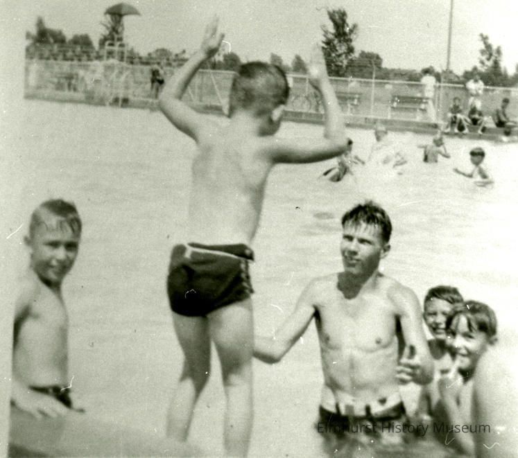 Children at East End Park swimming pool, 463 E. Schiller Street