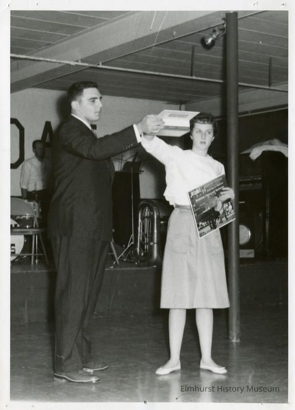 Mike Psaltis and Barbara Helm holding a prize drawing at the Elmhurst Park District Youth Center at 407 W. St. Charles Road.Photograph Details
