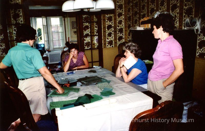 Piecemaker members collaborating on the Elmhurst Sesquicentennial Quilt that the organization created. Mary Conley is on the right and Kathy Smith is on the leftPhotograph Details
