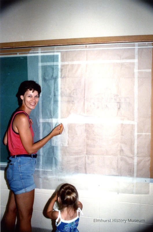 Elmhurst Piecemaker, Laurie Peters, designing the Elmhurst Sesquicentennial quiltPhotograph Details