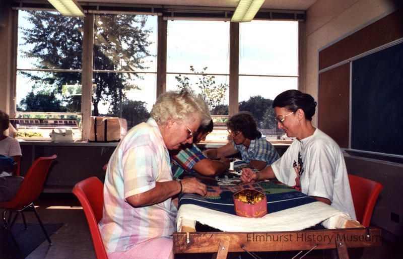 Elmhurst Piecemakers members quilting the Elmhurst Sesquicentennial QuiltPhotograph Details