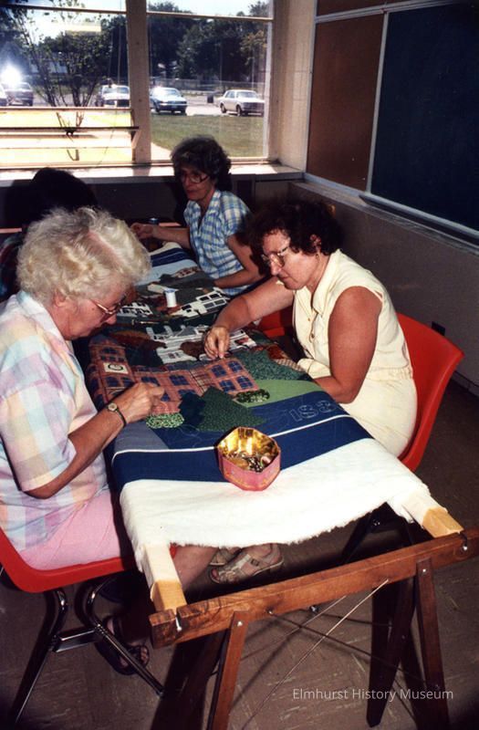 Members of Elmhurst Piecemakers quilting the Elmhurst Sesquicentennial QuiltPhotograph Details