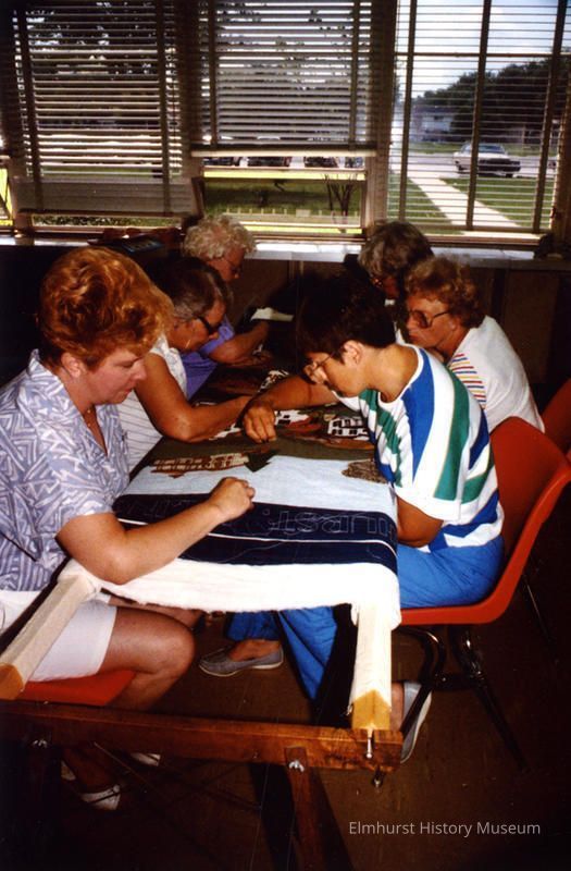 Members of Elmhurst Piecemakers women quilting the Elmhurst Sesquicentennial QuiltPhotograph Details