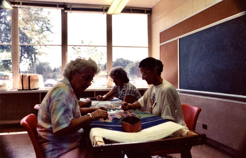 Members of Elmhurst Piecemakers quilting the Elmhurst Sesquicentennial QuiltPhotograph Details