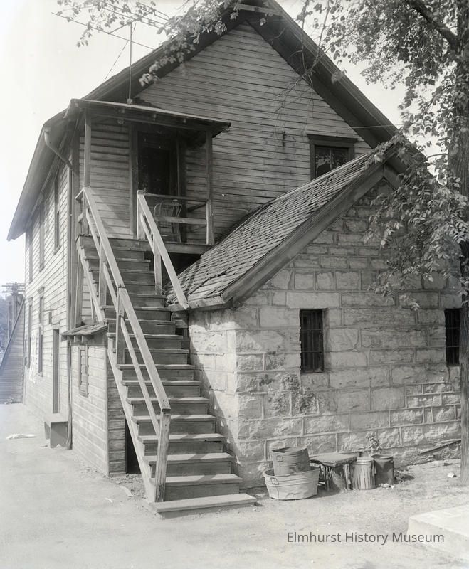 Elmhurst Fire station at 118 Schiller, a rear view looking northeast. This building, which was the first City Hall, was razed in 1954.Photograph Details