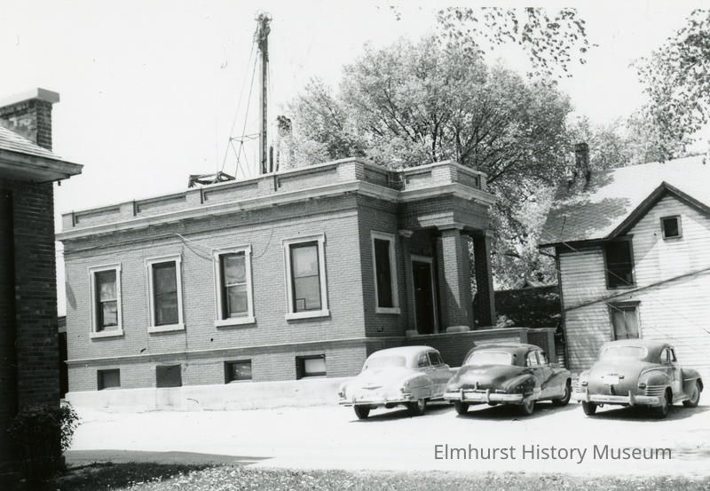On back of photo: Elmhurst Police Station / (brick bldg. on left) / Schiller St.