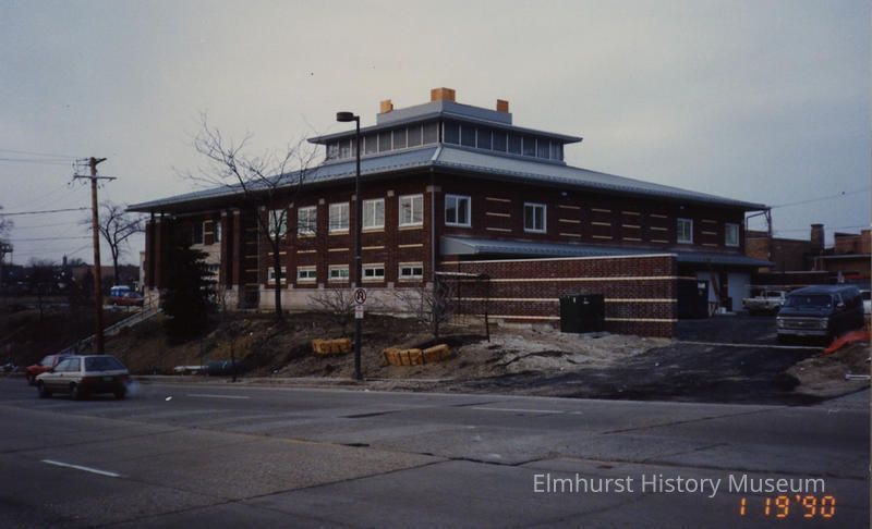 On back: East & North facades / of Elmhurst Police Station / Under construction / 125 E. First St. / January, 1990