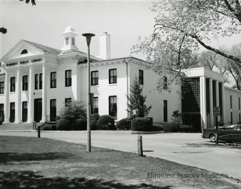 East and north facades of the Elmhurst Public Library in Wilder Mansion, looking southwest.Photograph Details