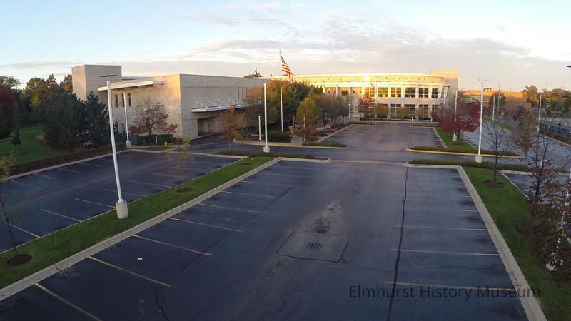 East entrance and parking lot of Elmhurst Public Library, 125 S. Prospect
