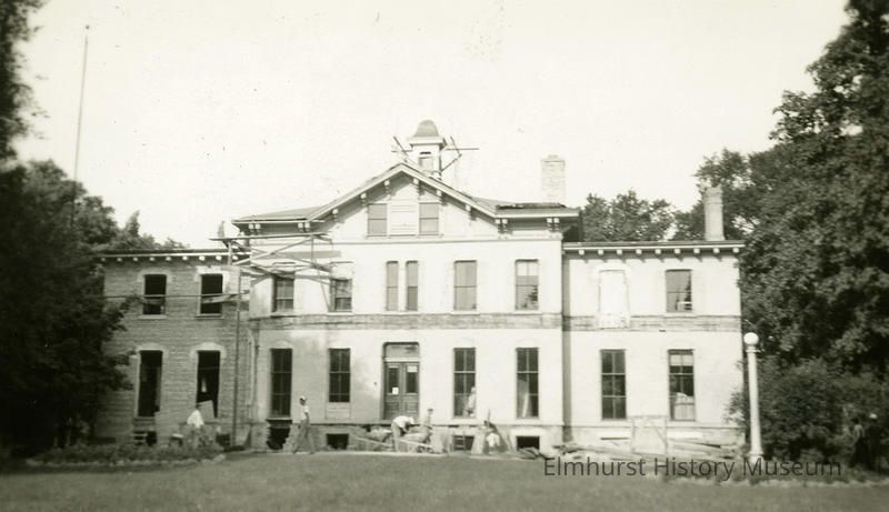 The east façade of Elmhurst Public Library after the porch has been removed during the Wilder Mansion building remodeling.Photograph Details