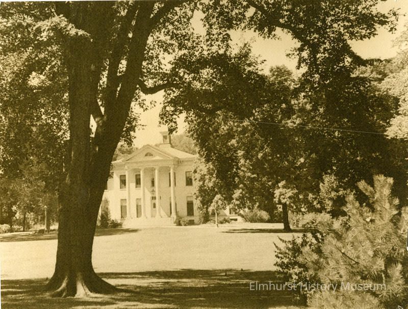 East façade of the Elmhurst Public Library located in Wilder Park.