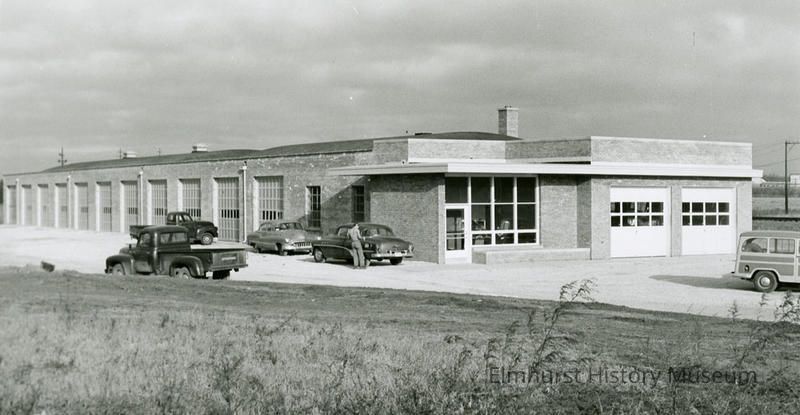 Elmhurst City Garage, shortly after its construction, north of the Illinois Central Railroad tracks on the west side of West Avenue.Photograph Details