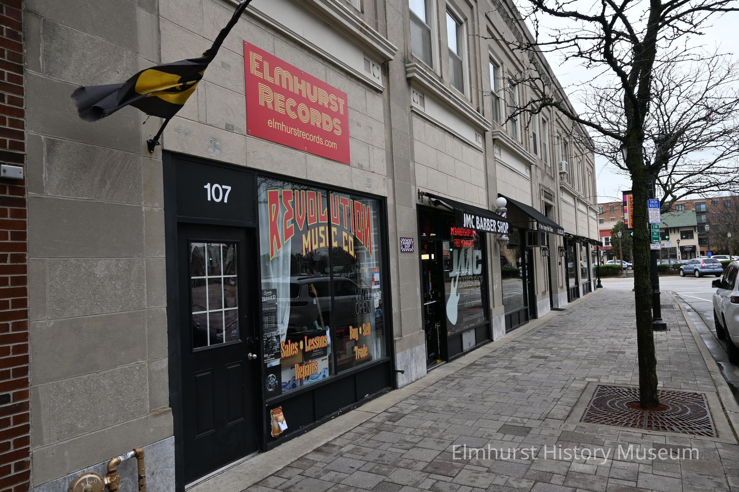Elmhurst Records at 107 N. Addison Avenue, looking south towards W. First Street.Photograph Details