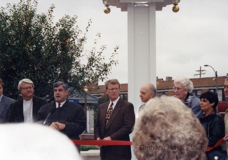 Dedication of Elmhurst Sesquicentennial clock on the northwest corner of York Street and Park Avenue