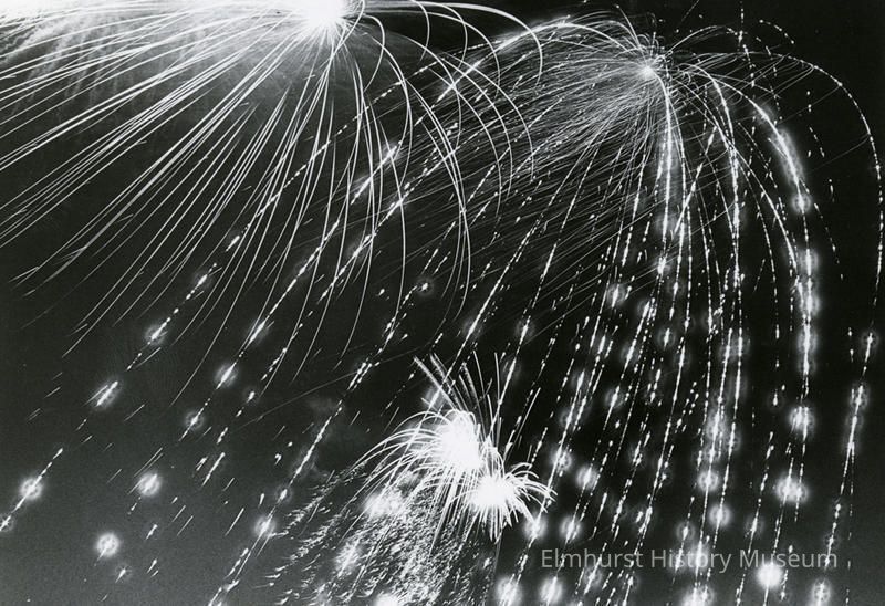 Written on back of image: Octoberfest celebration for Elmhurst Sesqui Sept, 1986 / Sept 86 Octoberfest Fireworks Stamped on back: Press Publications News Photo / Staff Photo by Mary Overstreet