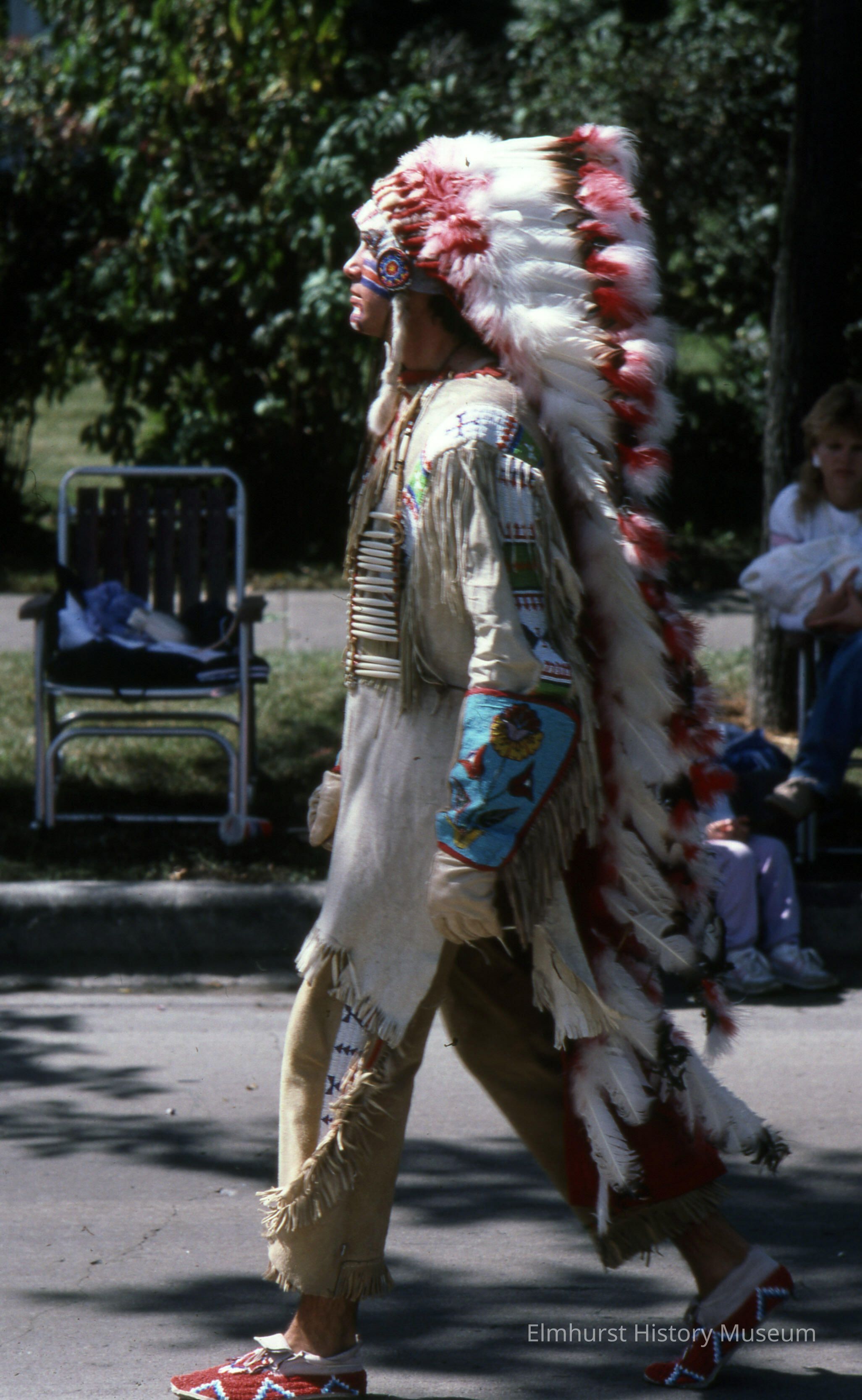 Elmhurst Sesquicentennial parade, University of Illinois' mascot in Native American costumePhotograph Details