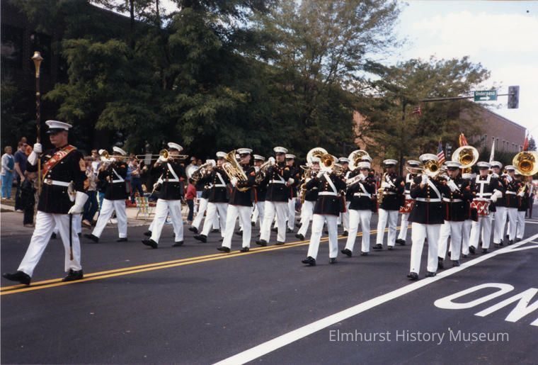 United States Marine Corps band marching in the Elmhurst Sesquicentennial paradePhotograph Details