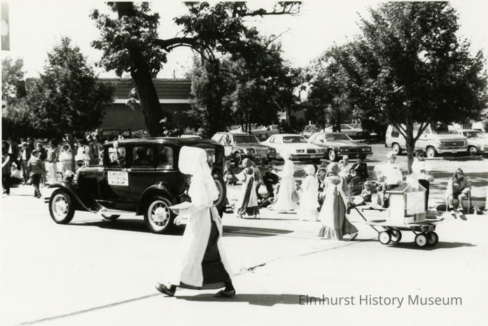 Written on back: Sesqui Parade Elmhurst Historical Society Housewalk entry in Sesquicentennial parade, 1986.
