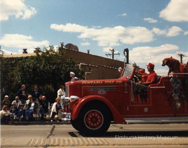 Funtasia Fire Co. fire truck driving in the Elmhurst Sesquicentennial Parade.Photograph Details