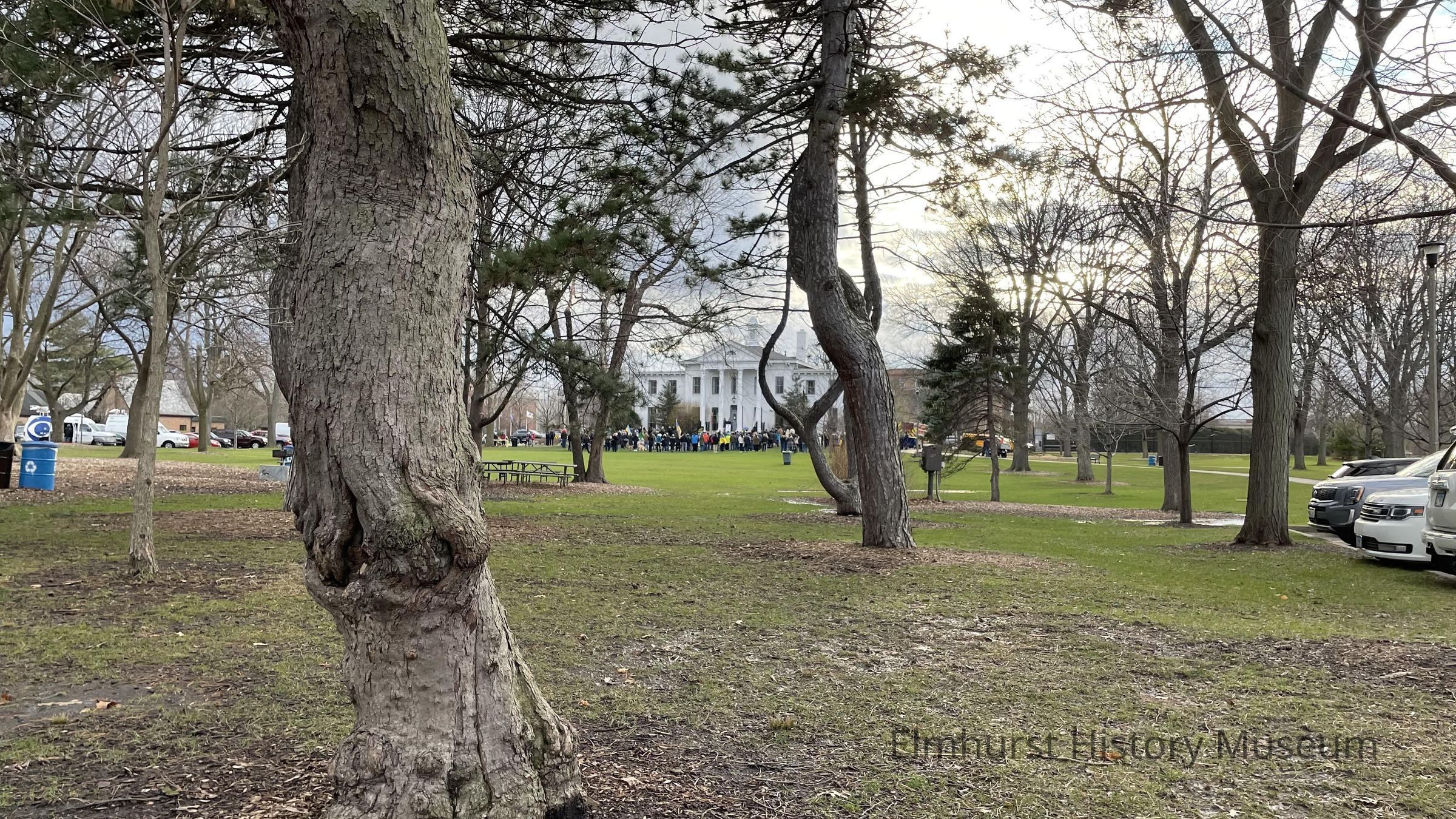 Crowds in front of the Wilder Mansion as a part of a community fundraising event in support of Ukraine following its invasion by Russia. Looking west from Cottage Hill Avenue.Photograph Details