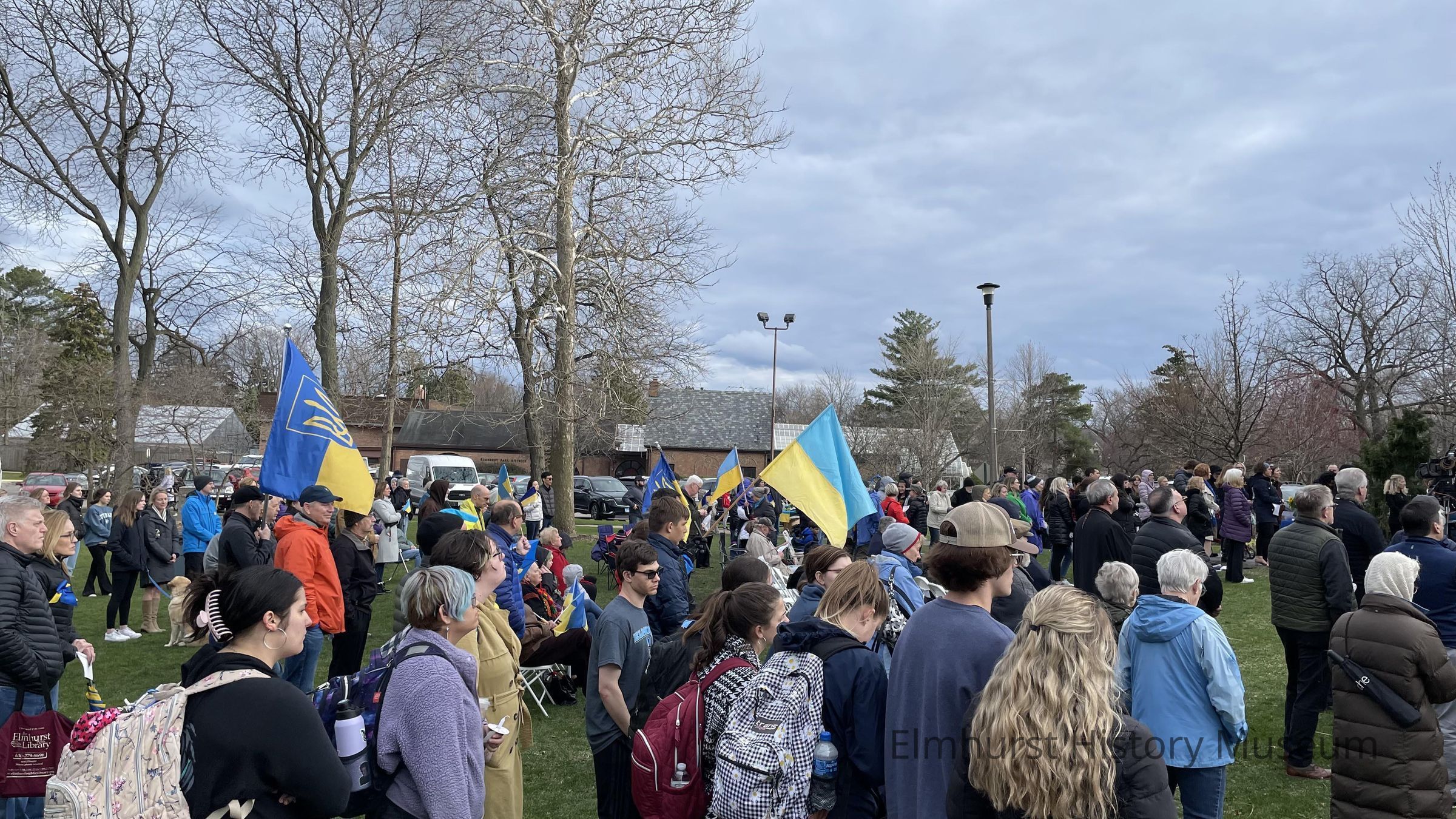 Crowds gather in front of the Wilder Mansion as a part of a community fundraising event in support of Ukraine following its invasion by Russia.Photograph Details