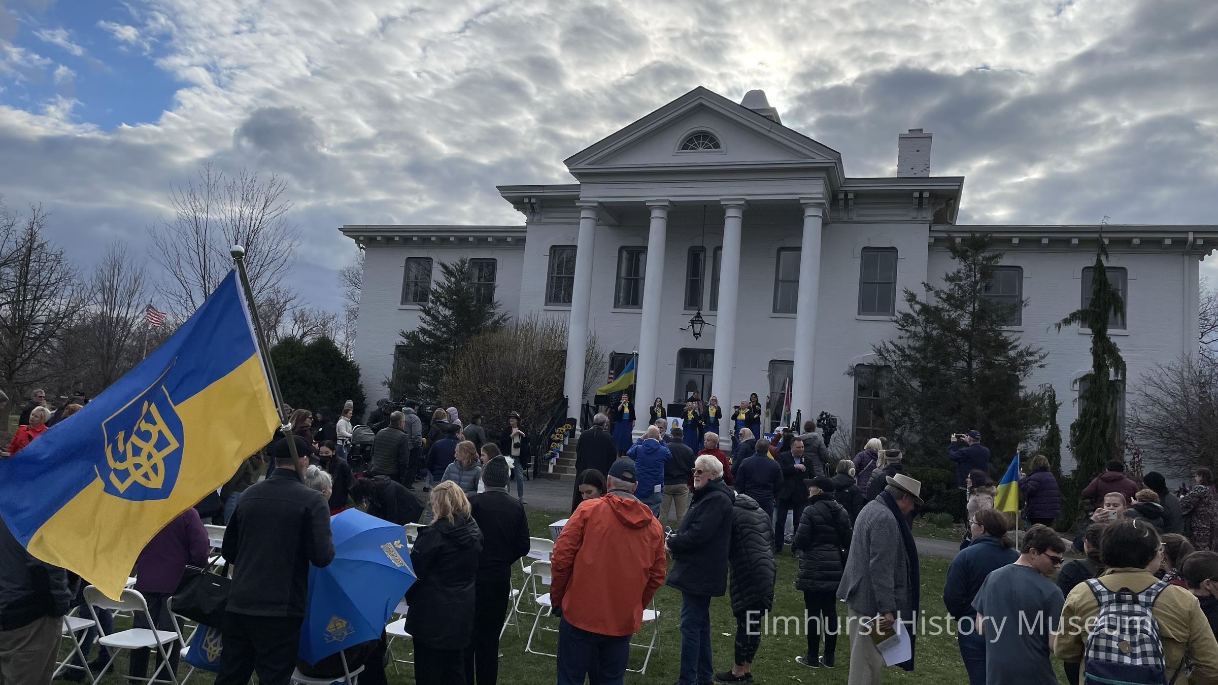 Crowds gather in front of the Wilder Mansion for a community fundraising event in support of Ukraine following its invasion by Russia.Photograph Details