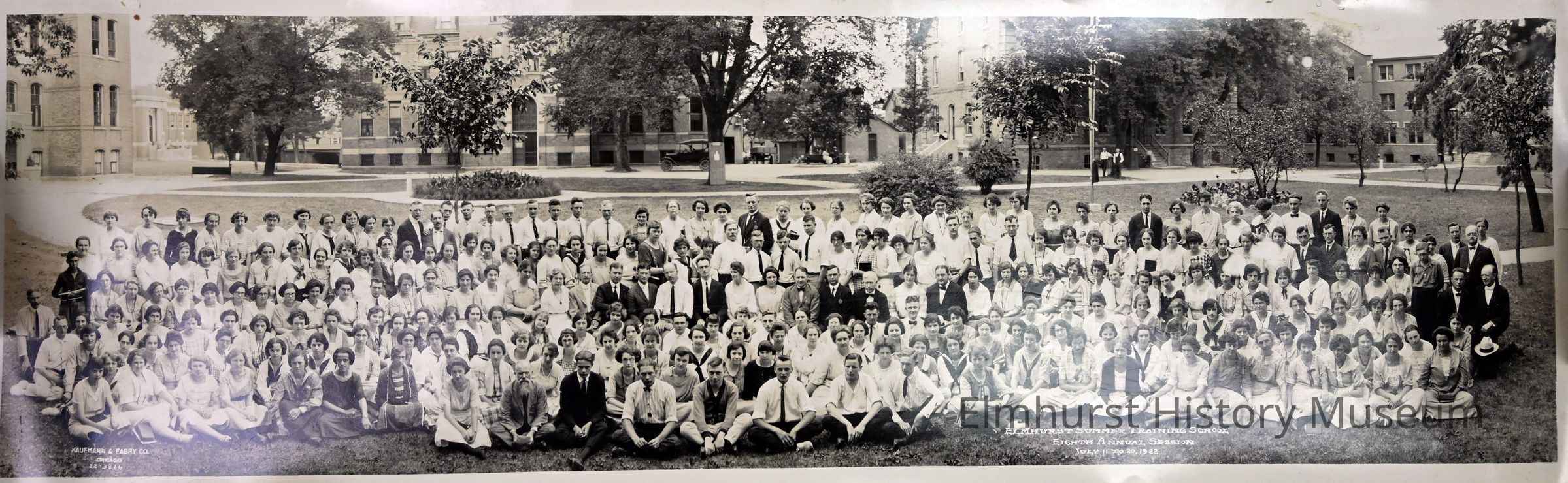 Panoramic photograph of the Elmhurst Summer Training School on the grounds of Elmhurst College.Photograph Details