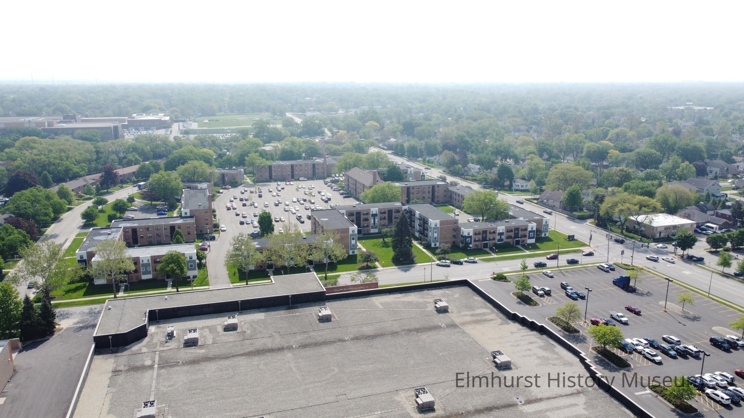 Aerial view of Elmhurst Terrace Apartments on the northeast corner of St. Charles Road and West Avenue, looking east from IL Route 83.Photograph Details