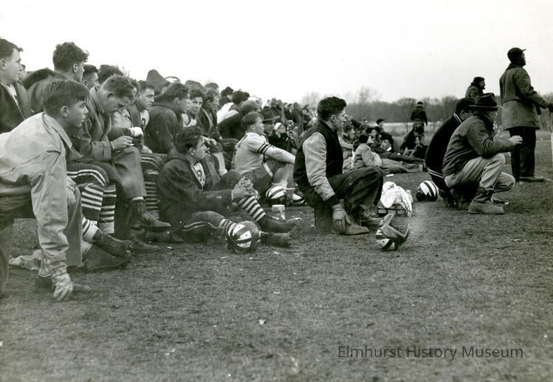 Spectators and players at an Elmhurst Travelers football game.Photograph Details