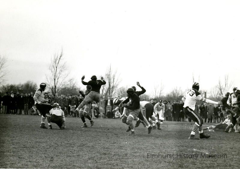 Elmhurst Travelers football team in action during a game.Photograph Details