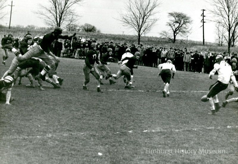 Elmhurst Travelers football team in action during a game.Photograph Details