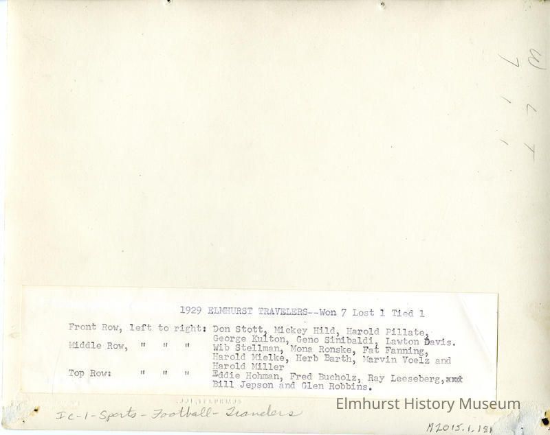 Team picture. Elmhurst Travelers Football semi-professional team.Photograph Details