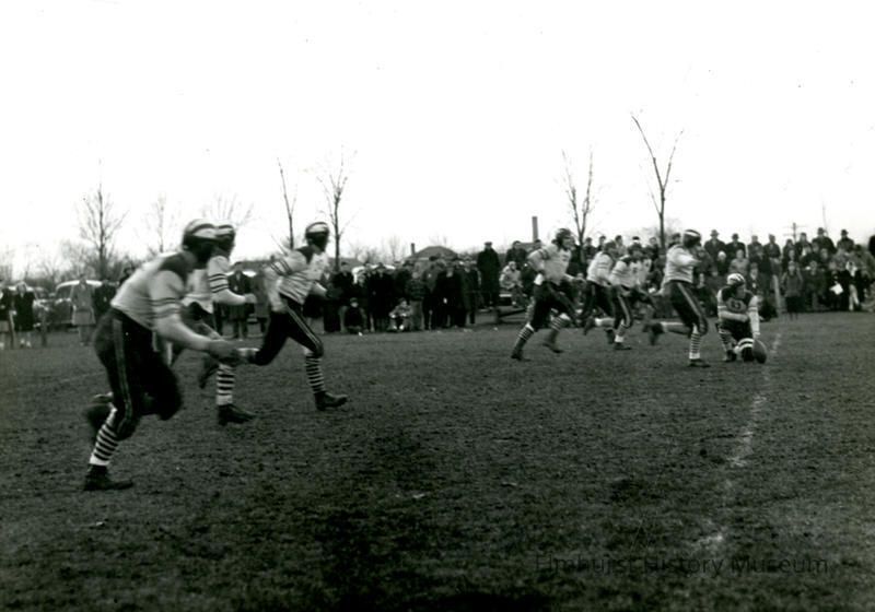 Elmhurst Travelers football team in action during a game.Photograph Details