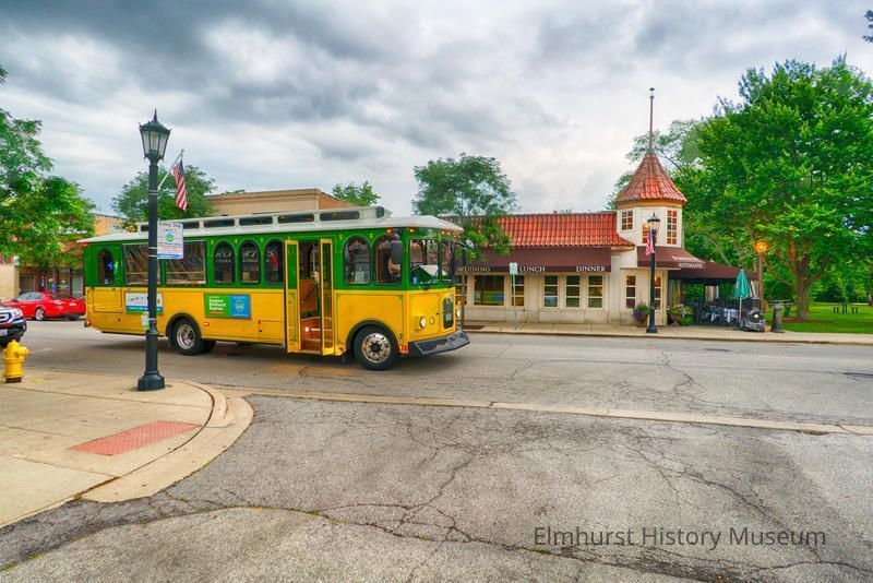 Elmhurst Trolley Stop at Spring Road, in front of Stemple's Cycling Shop and Roberto's Restaurant.Photograph Details