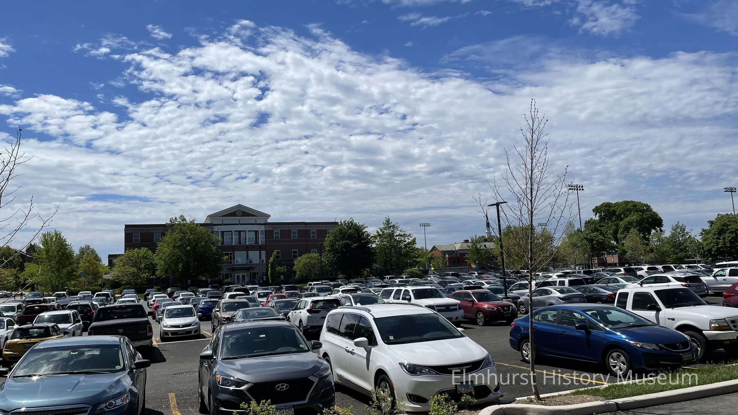 View of the Alexander Boulevard parking lot at Elmhurst University, looking south from Walter Street towards Jean Koplin Memorial Hall.Photograph Details