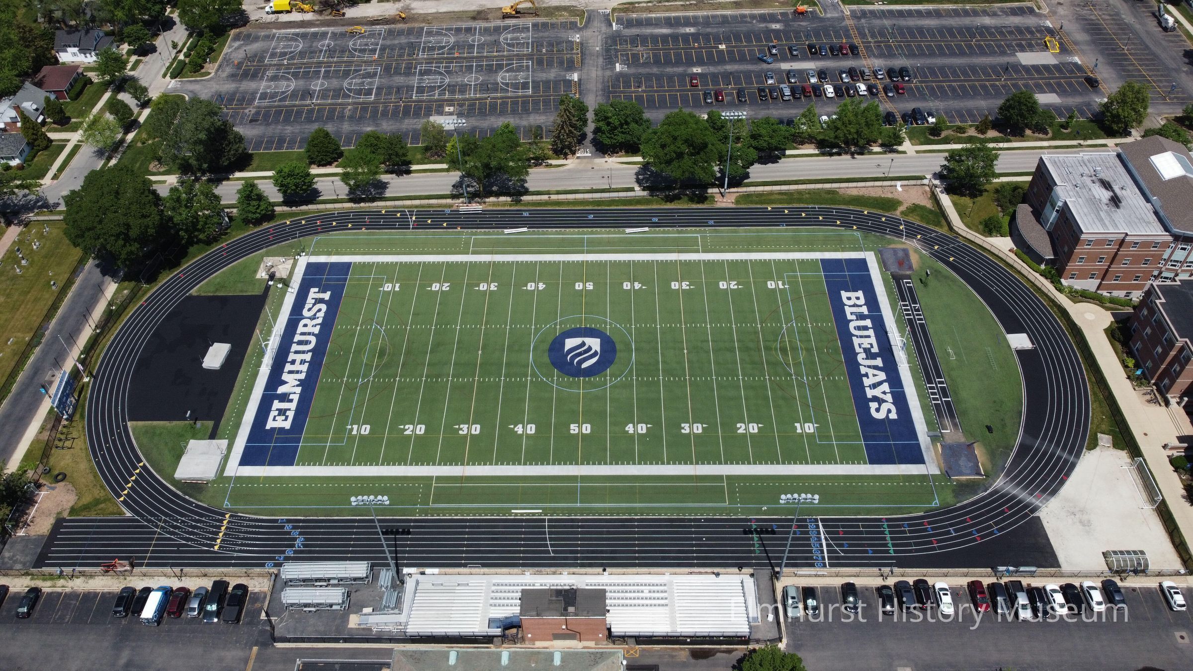 Aerial View of Langhorst Field at Elmhurst University, looking north towards Alexander StreetPhotograph Details
