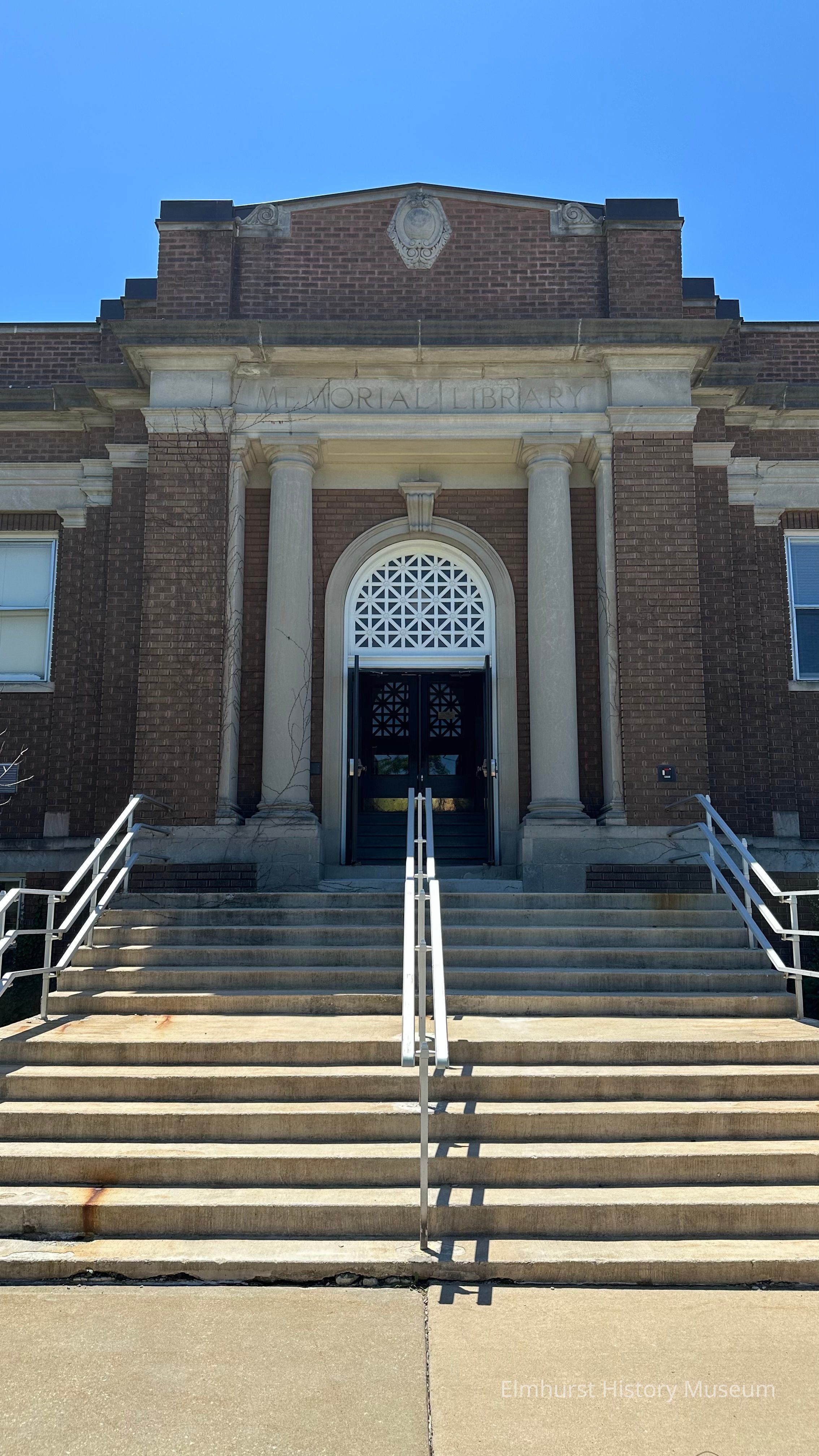 Entranceway to Memorial Hall on the Elmhurst University campus, shortly before the building's demolition.Photograph Details