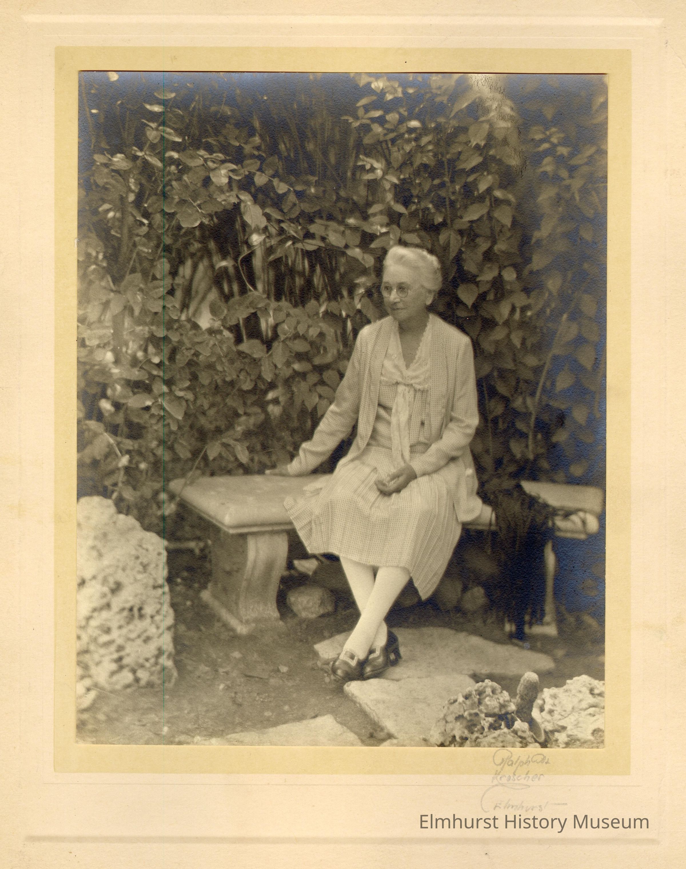 Portrait of Emma Glos in her garden at 159 Cottage Hill Avenue.Photograph Details