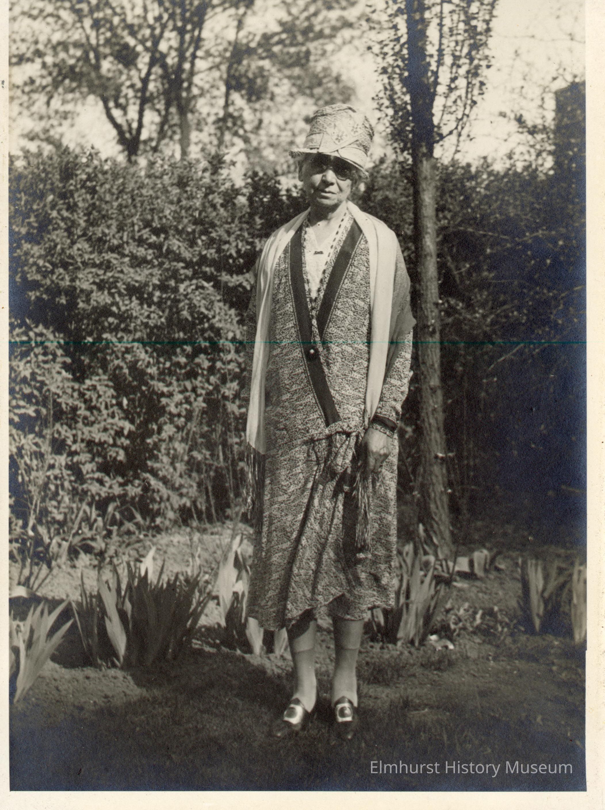 Photograph of Emma Glos in her garden at 159 Cottage Hill Avenue.