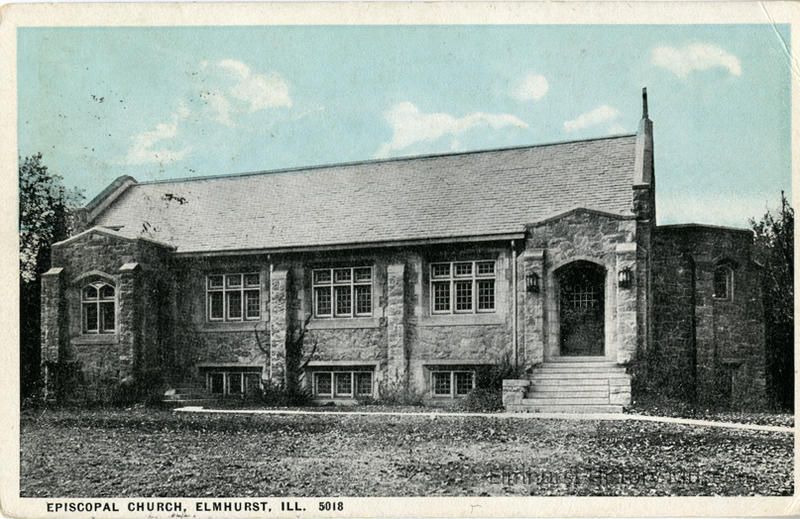 Written on back: "Built - 1915 - S-W Corner Church and Kenilworth / Built from Stone salvaged from the Chicago Court House that was damaged / in the 1871 Chicago Fire."