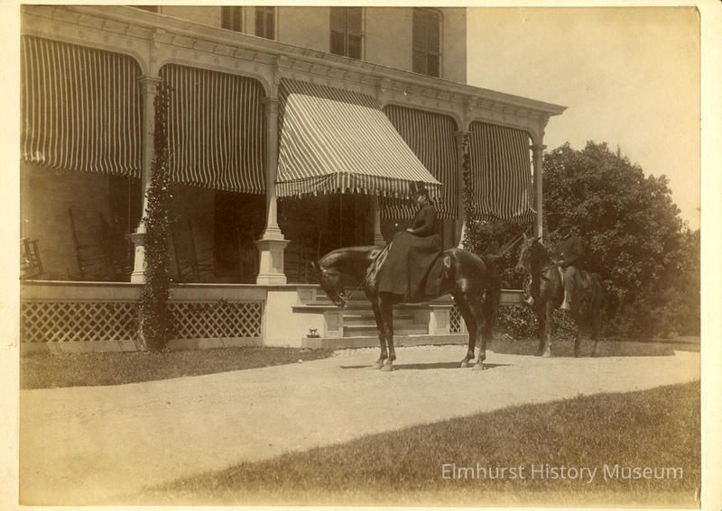A woman and a man on horses in front of the Henry W. and Aurelia Case King home, which was later known as the Wilder Mansion.Photograph Details