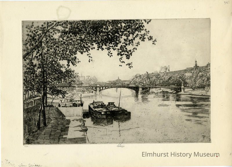 Etching of a river. Signed and dated.