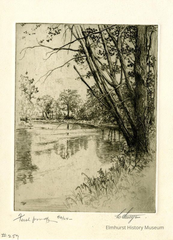 Etching of a bend in a river. Signed and dated. First proof.