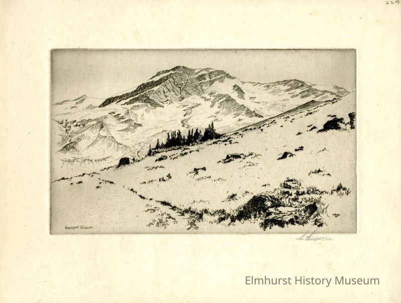 Etching of a glacier. Signed and dated.